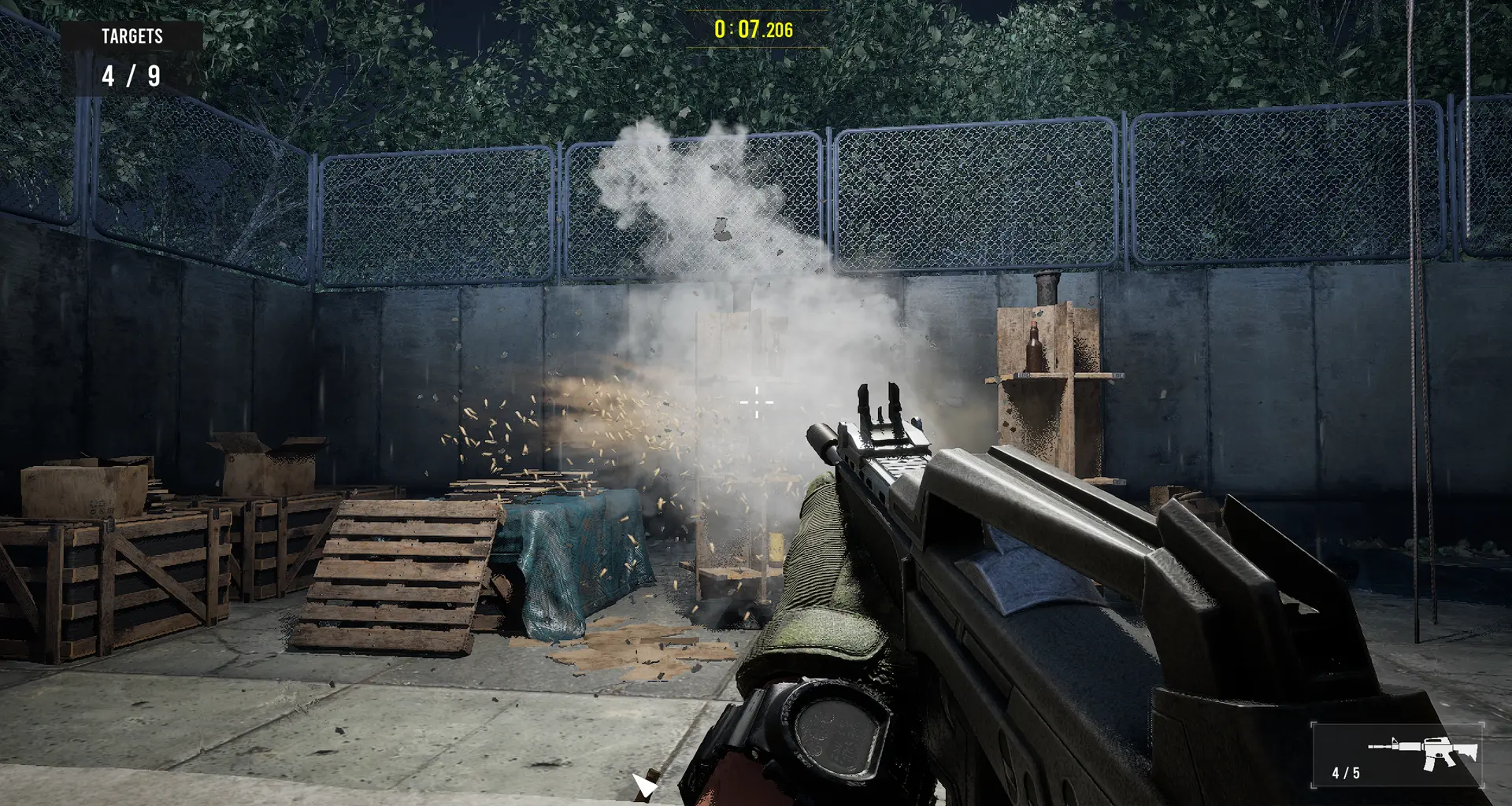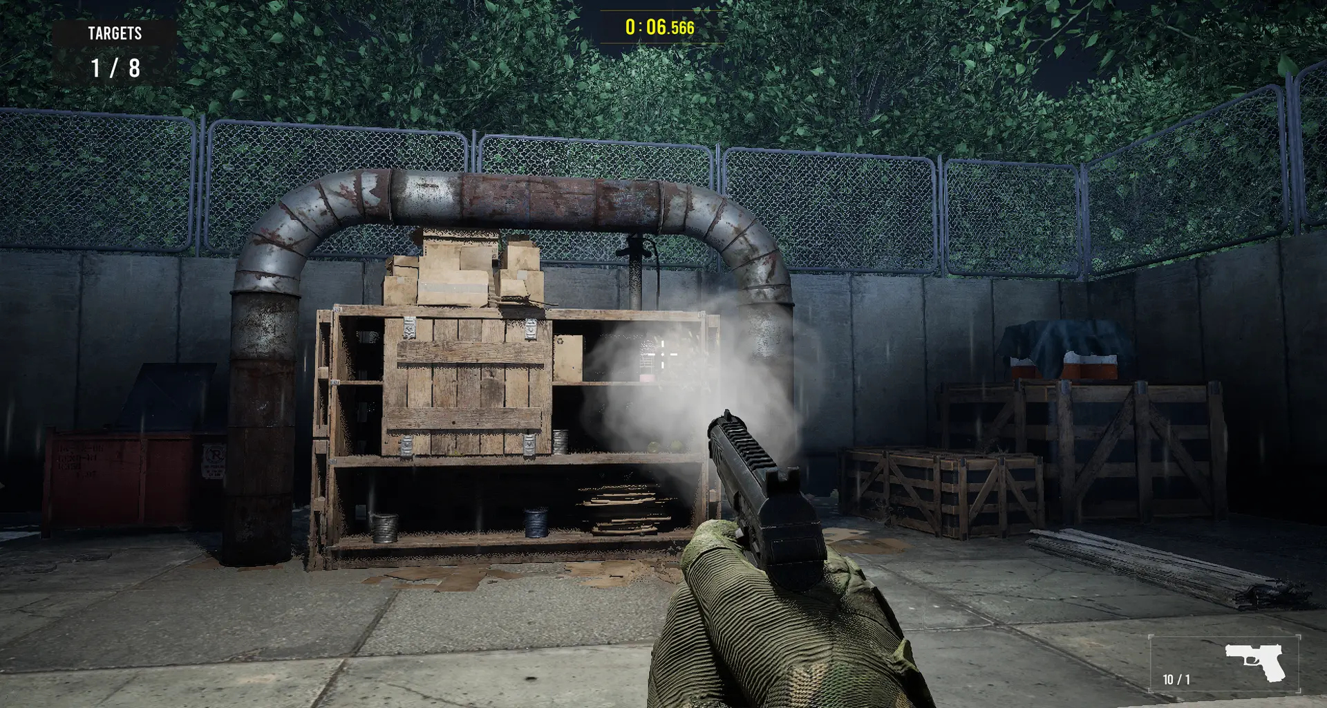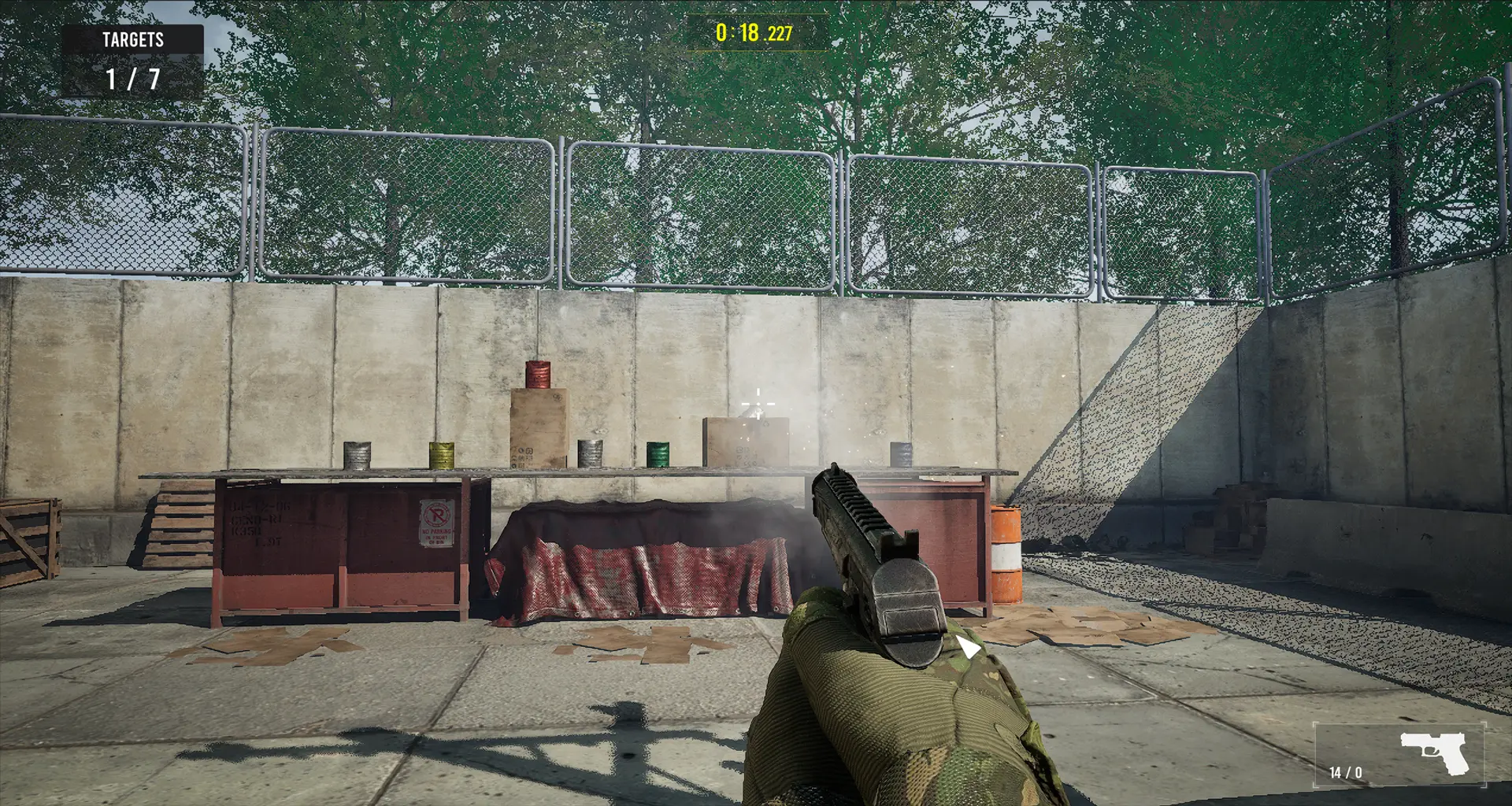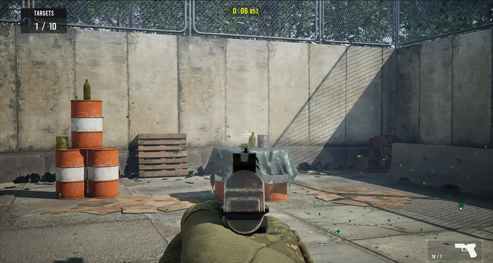 Engage in time-based shooting challenges where accuracy and reaction time are key. Use a variety of weapons, including pistols and automatic firearms, each with unique handling. Hit moving and reactive targets to achieve higher scores and unlock new challenges.